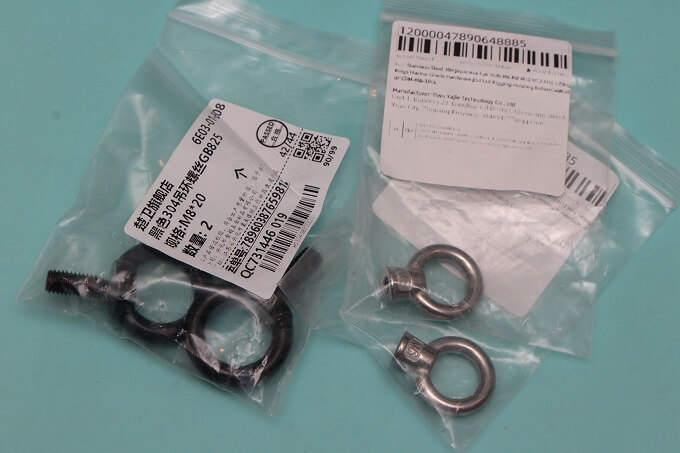 フックを掛けるためのアイボルト、アイナットをAliで買いました。