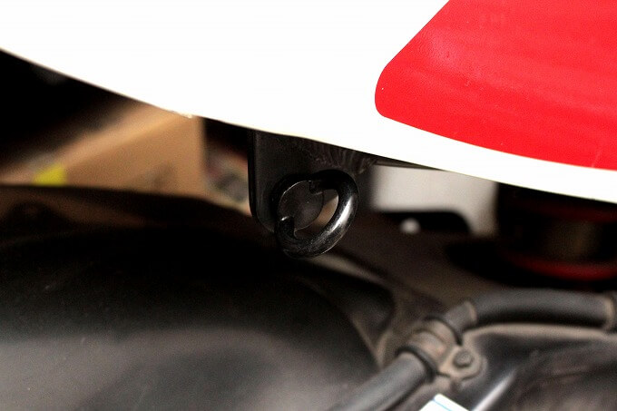 ツーリングネットを引っ掛ける良い場所がありません。で、ネットのフックが掛けられるようにワッカの金具を4ヶ所追加しようと考えました。
