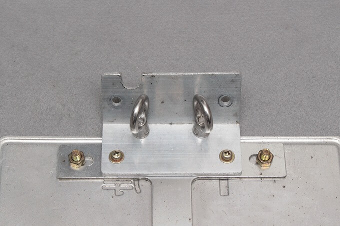 黒い方がM8-20のアイボルト 銀の方がM6のアイナット。