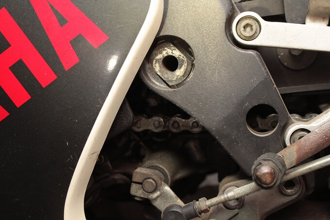 純正タンデムシートのフレームをボルトで固定するための孔。